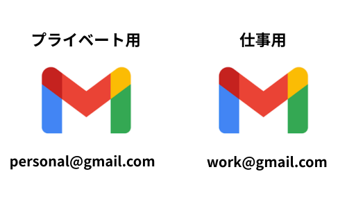 Gmailアドレスを追加すれば、仕事用とプライベート用のメールアドレスを分けて運用できます。