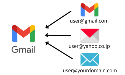 これらのアドレスに送信されたメールは、すべて元のアドレス([email protected])に届きます。