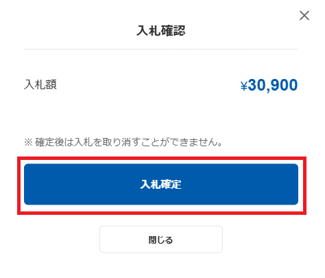 入札額を確認する画面が表示されるので、「入札確定」を押して完了です。