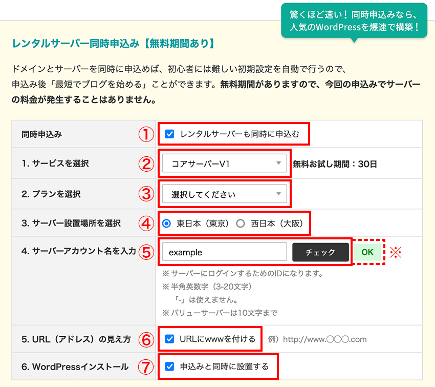 5同時にレンタルサーバーを申し込む場合は以下を選択します。