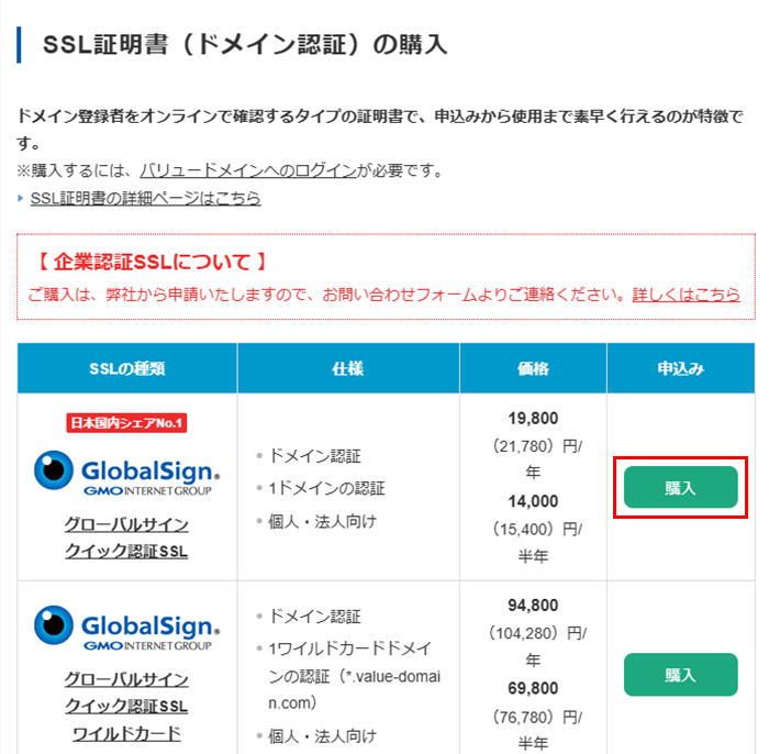 SSL証明書の購入