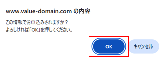 4メッセージが表示されますので、「OK」をクリックします。