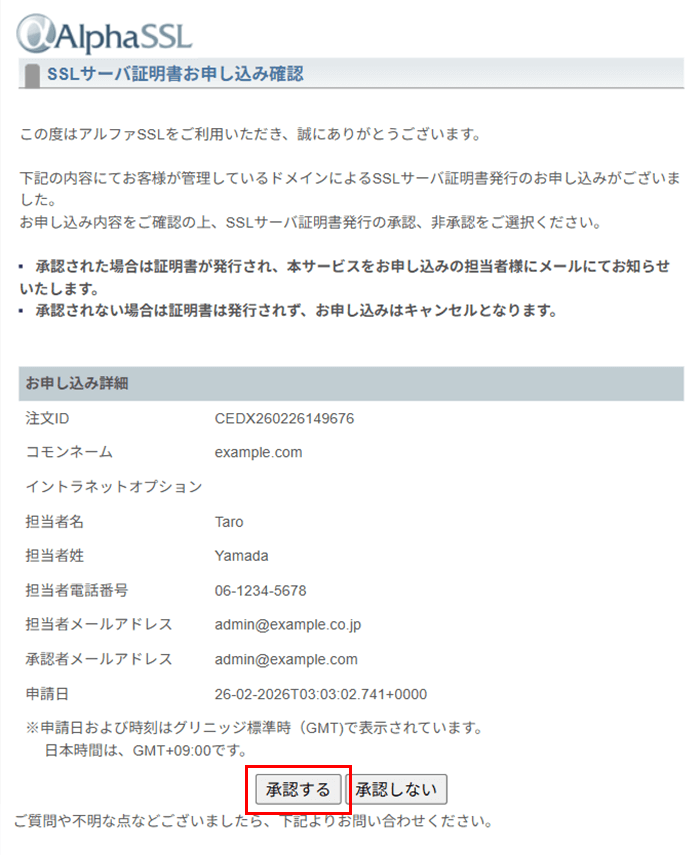 アルファSSL approval@globalsign.com アルファSSL/承認手続きのお知らせ(オーダーID)